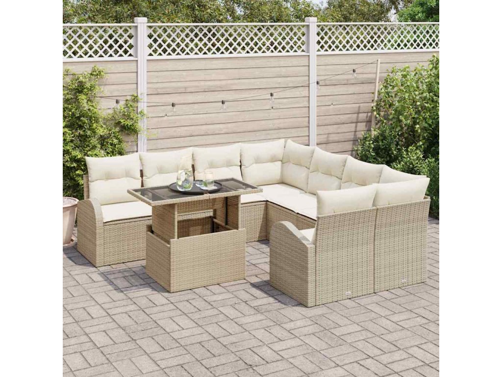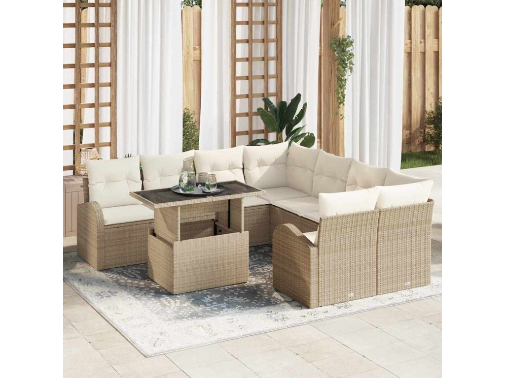 Sada zahradních pohovek s polštářem 9 pcs Béžová Poly Ratan 3357354