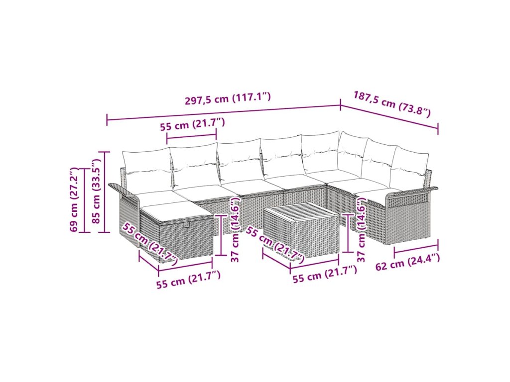 Sada zahradních pohovek s polštářem 9 pcs Béžová Poly ratan 3359470