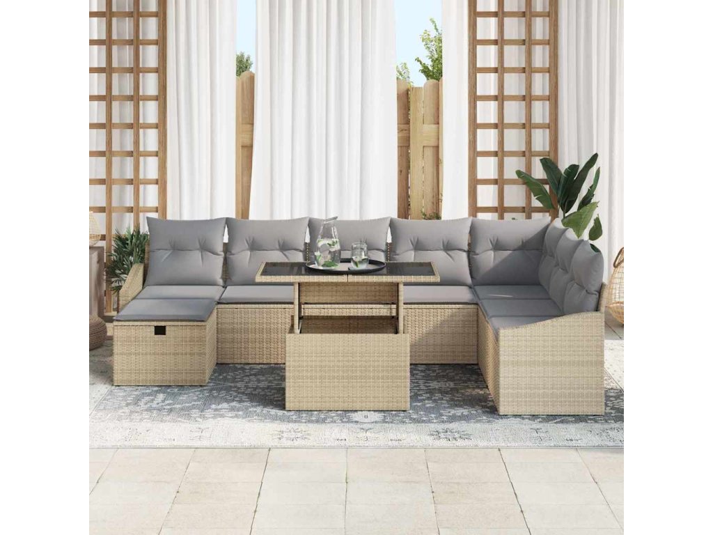 Sada zahradních pohovek s polštářem 9 pcs Béžová Poly ratan 3359857