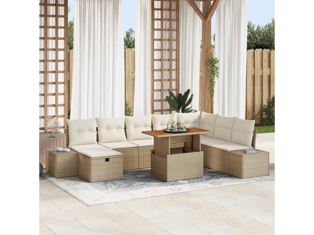 Sada zahradních pohovek s polštářem 9 pcs Béžová Poly ratan 3360068