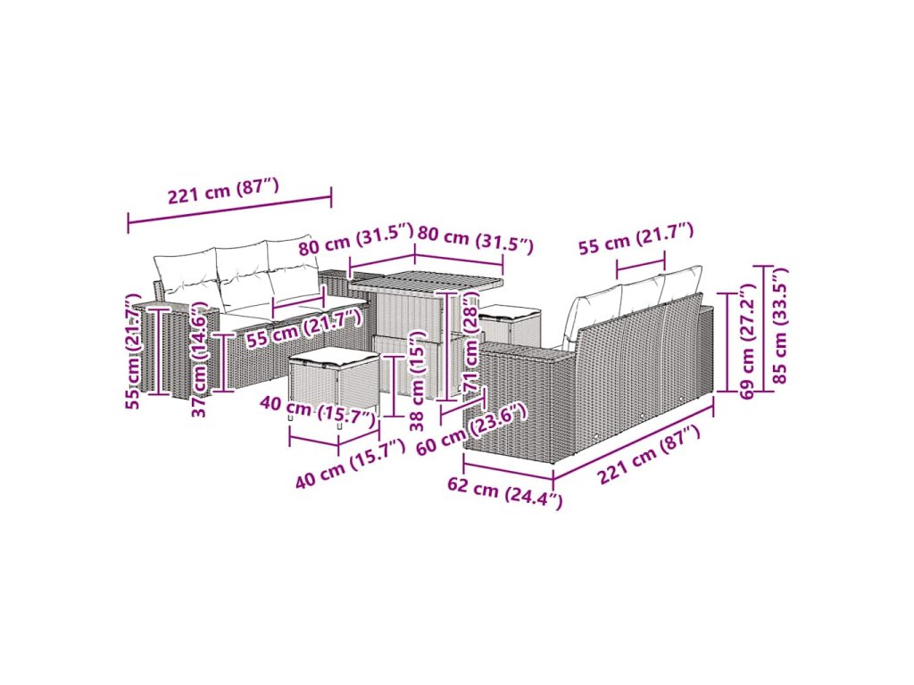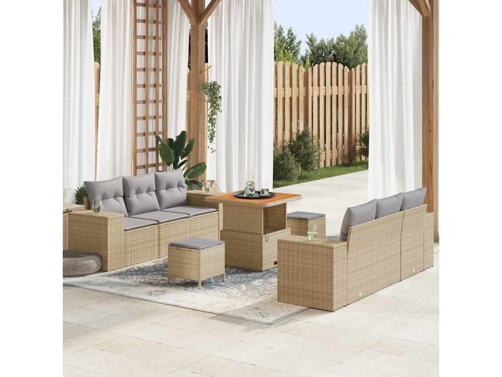 Sada zahradních pohovek s polštářem 9 pcs Béžová Poly ratan 3361957