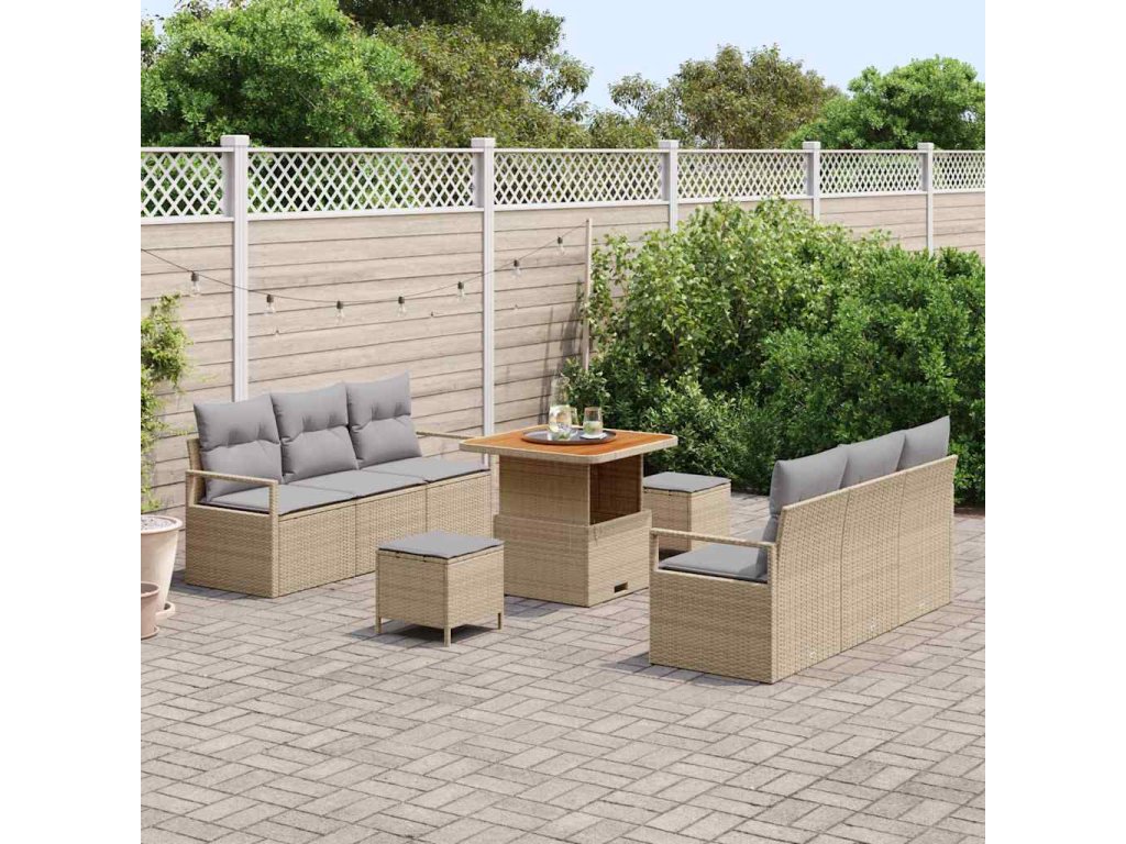 Sada zahradních pohovek s polštářem 9 pcs Béžová Poly ratan 3362477