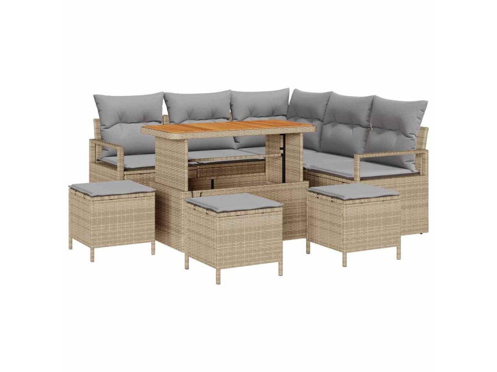 Sada zahradních pohovek s polštářem 9 pcs Béžová Poly ratan 3362532