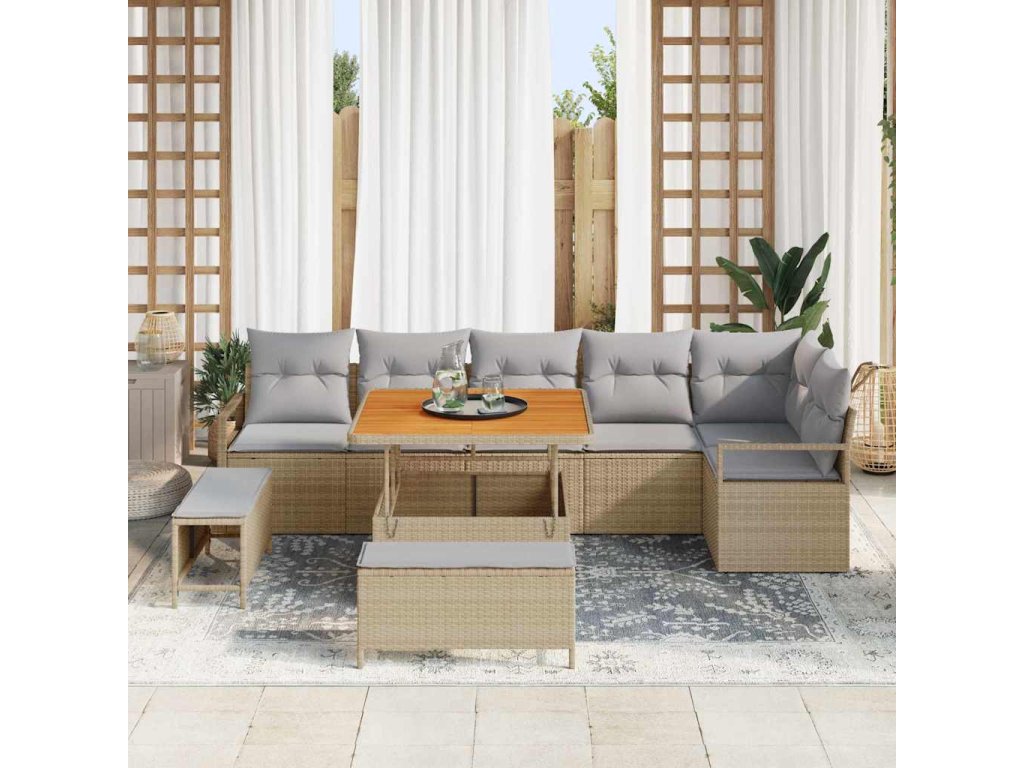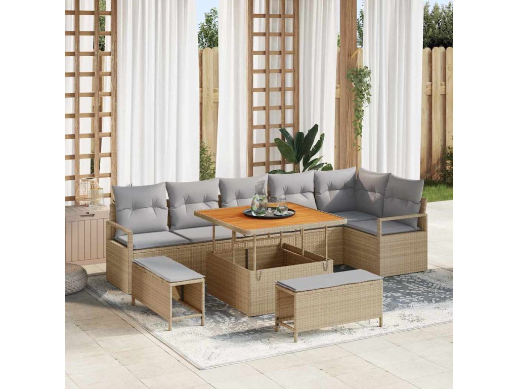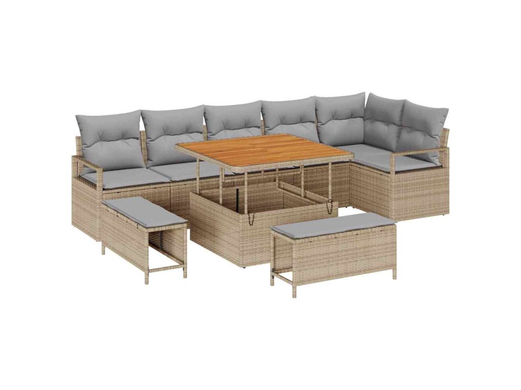 Sada zahradních pohovek s polštářem 9 pcs Béžová Poly ratan 3362537