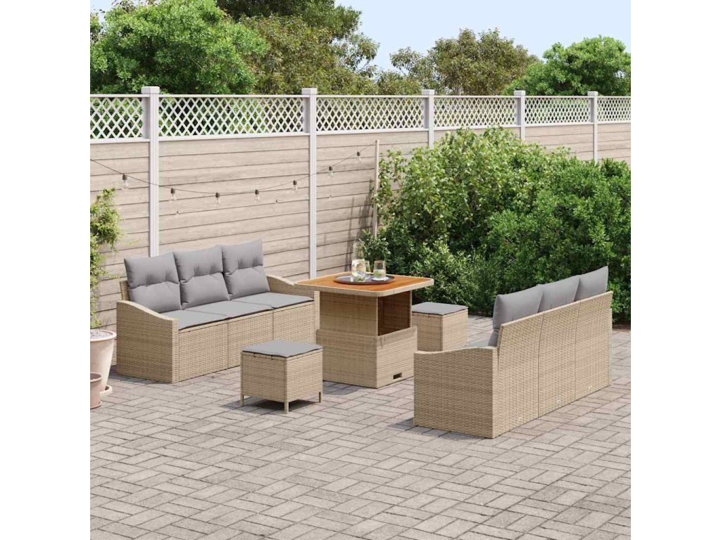 Sada zahradních pohovek s polštářem 9 pcs Béžová Poly ratan 3362607