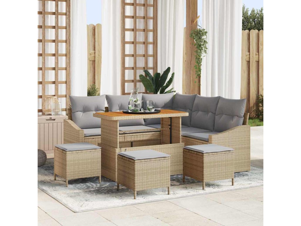 Sada zahradních pohovek s polštářem 9 pcs Béžová Poly ratan 3362662