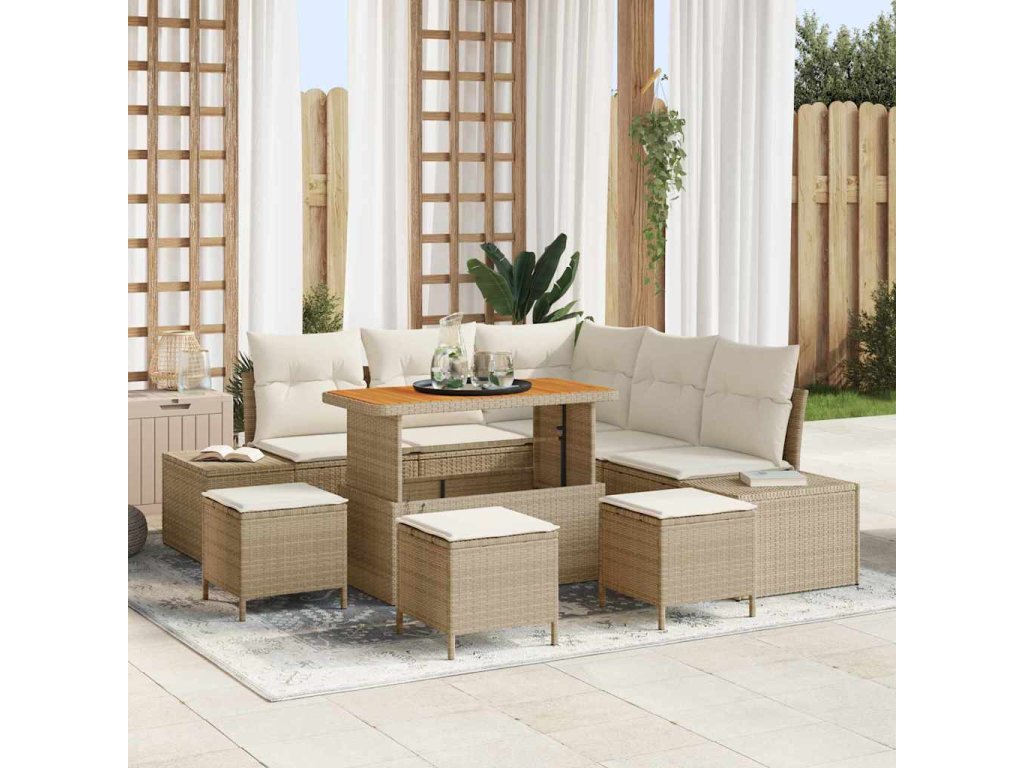 Sada zahradních pohovek s polštářem 9 pcs Béžová Poly ratan 3362791