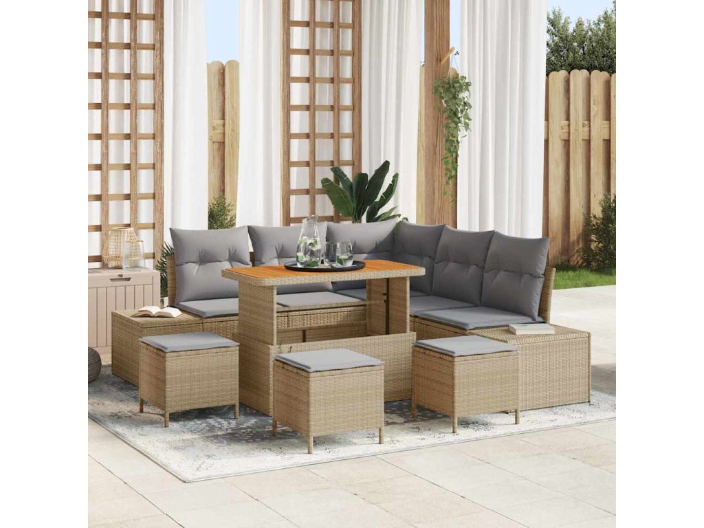 Sada zahradních pohovek s polštářem 9 pcs Béžová Poly ratan 3362792