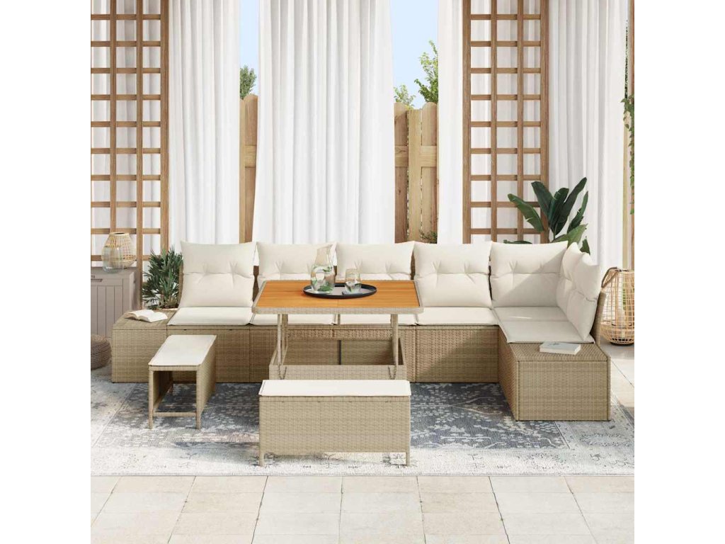 Sada zahradních pohovek s polštářem 9 pcs Béžová Poly ratan 3362796