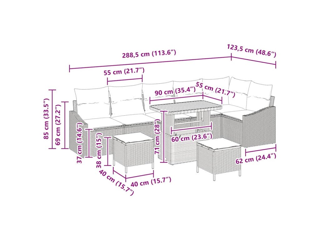 Sada zahradních pohovek s polštářem 9 pcs Béžová Poly ratan 3364626