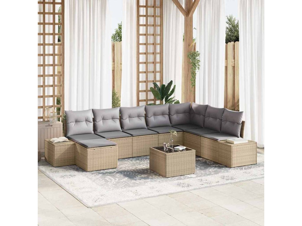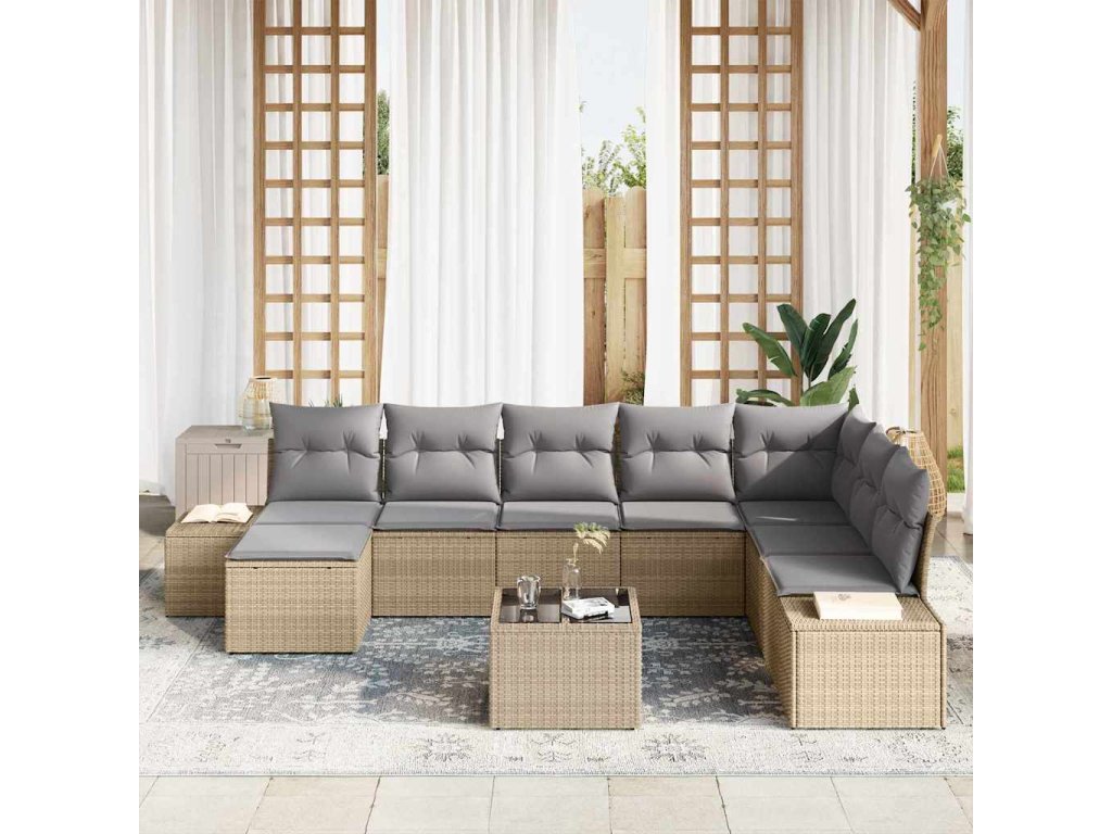 Sada zahradních pohovek s polštářem 9 pcs Béžová polyratan 3347190