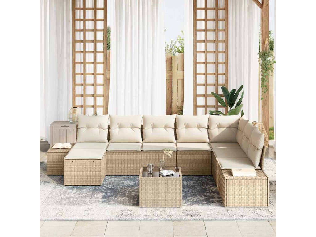 Sada zahradních pohovek s polštářem 9 pcs Béžová polyratan 3347191
