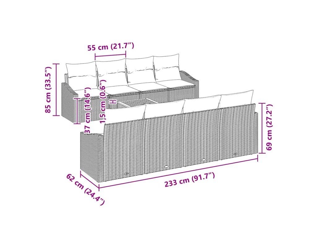 Sada zahradních pohovek s polštářem 9 pcs Béžová polyratan 3347805