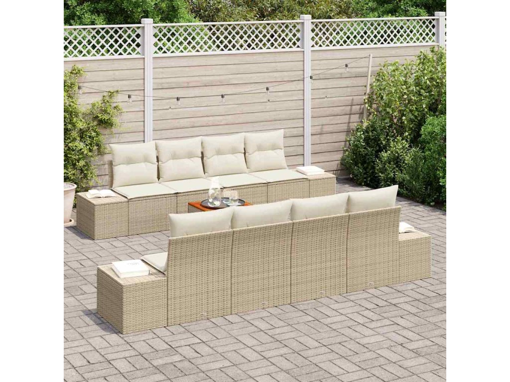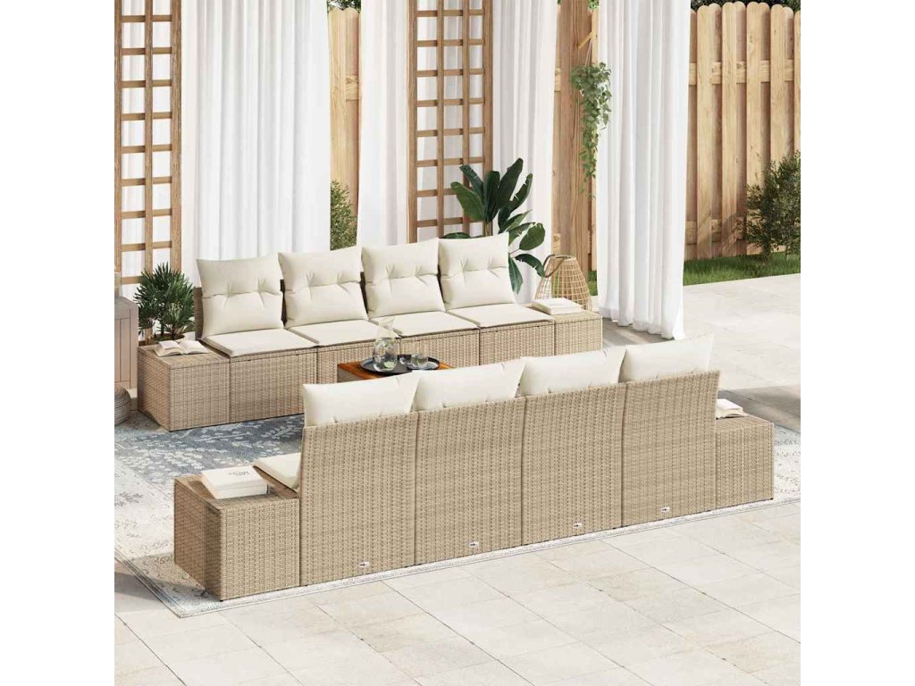 Sada zahradních pohovek s polštářem 9 pcs Béžová polyratan 3347932