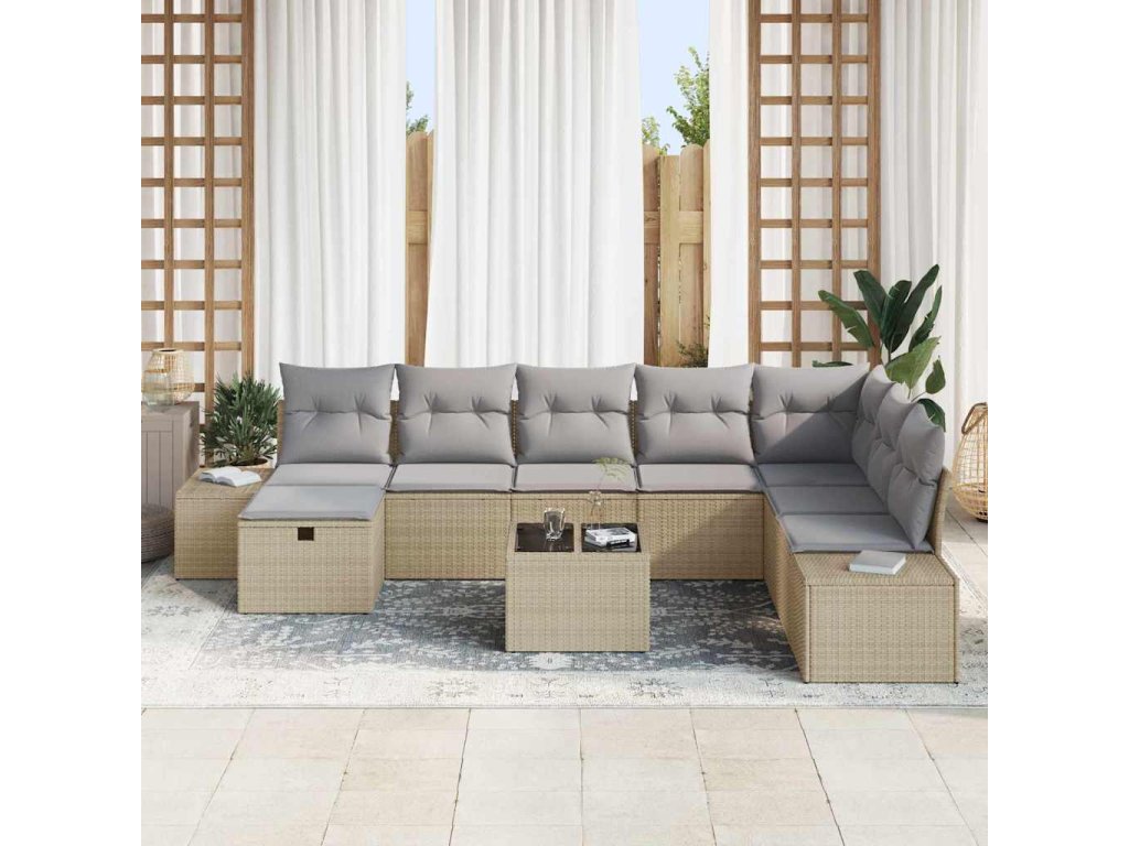 Sada zahradních pohovek s polštářem 9 pcs Béžová polyratan 3359439