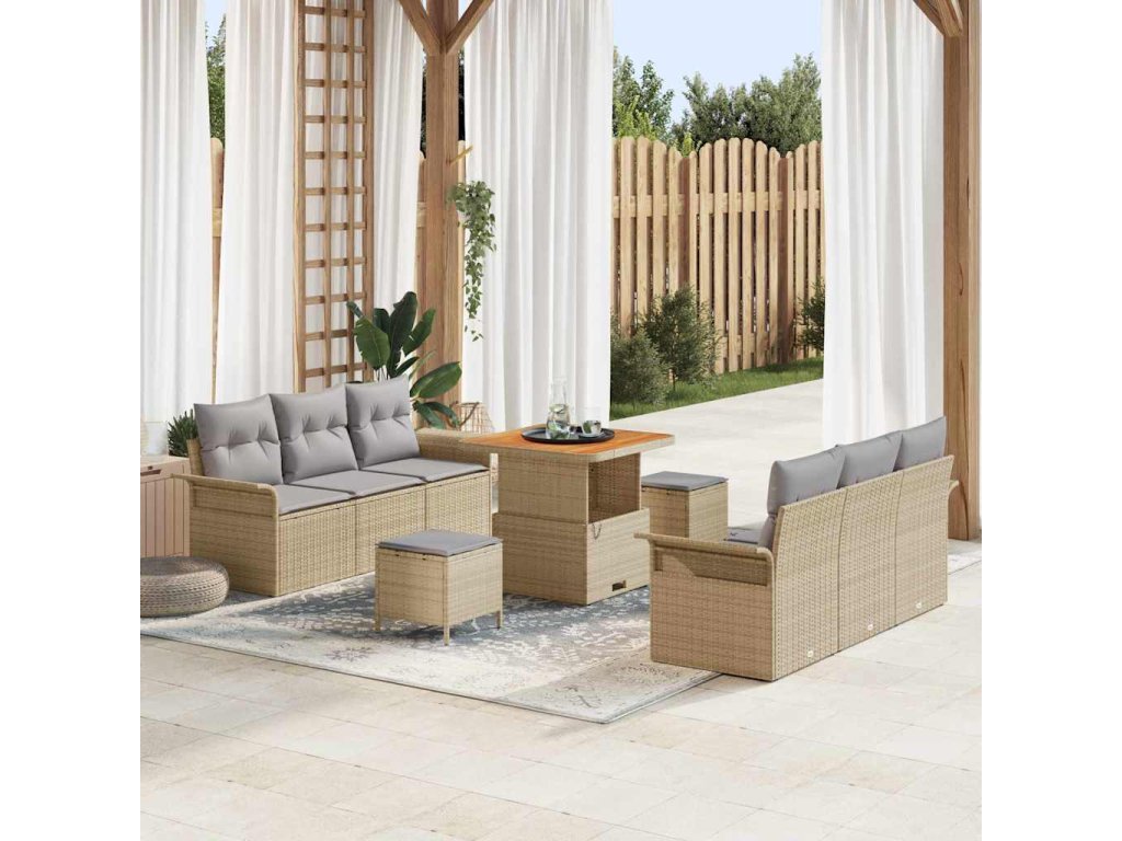 Sada zahradních pohovek s polštářem 9 pcs Béžová polyratan 3362087