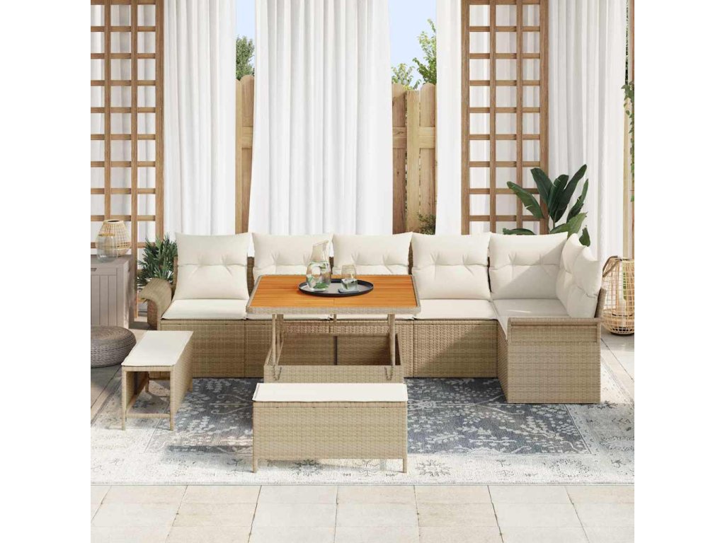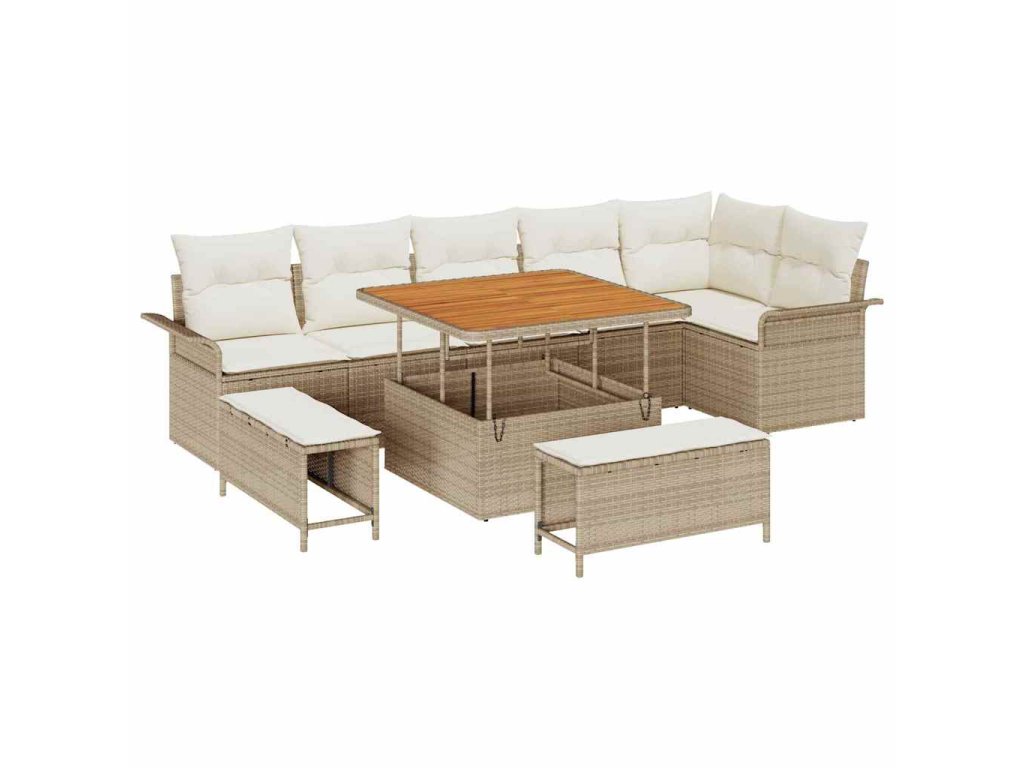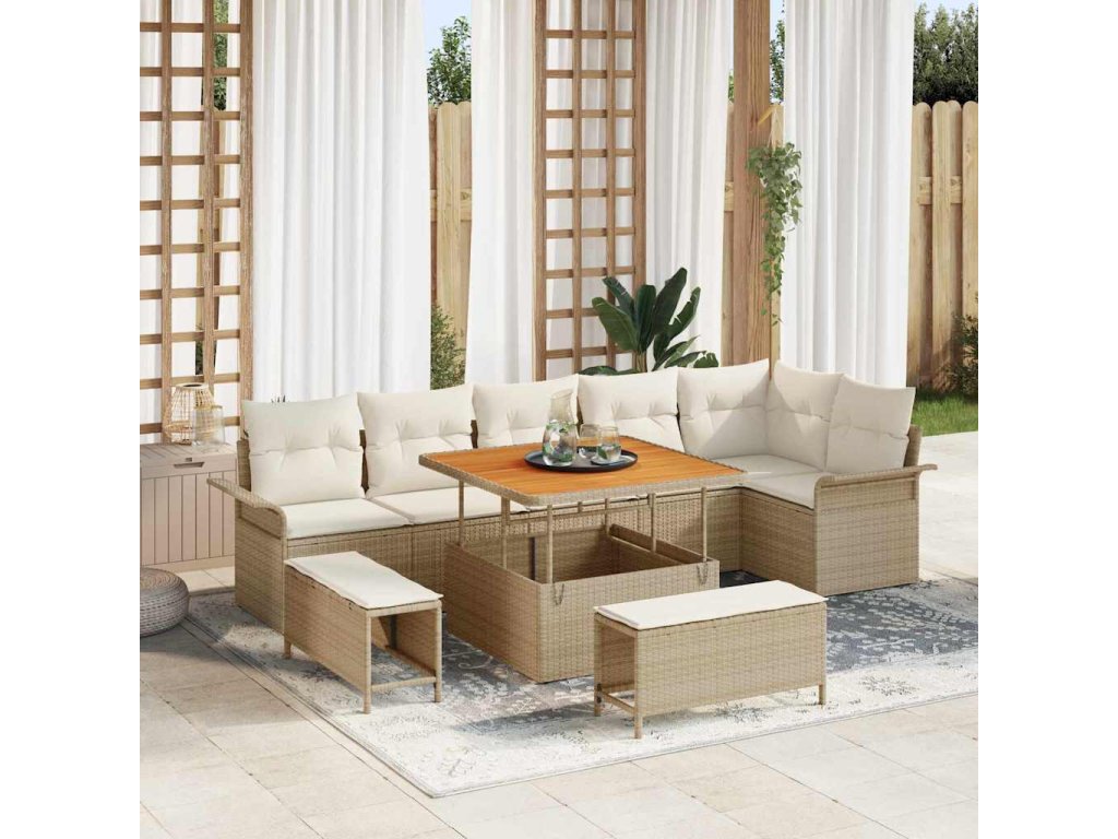 Sada zahradních pohovek s polštářem 9 pcs Béžová polyratan 3362146