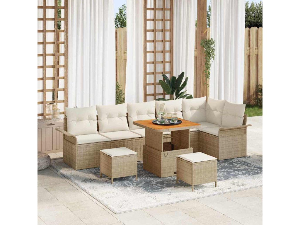 Sada zahradních pohovek s polštářem 9 pcs Béžová polyratan 3362151