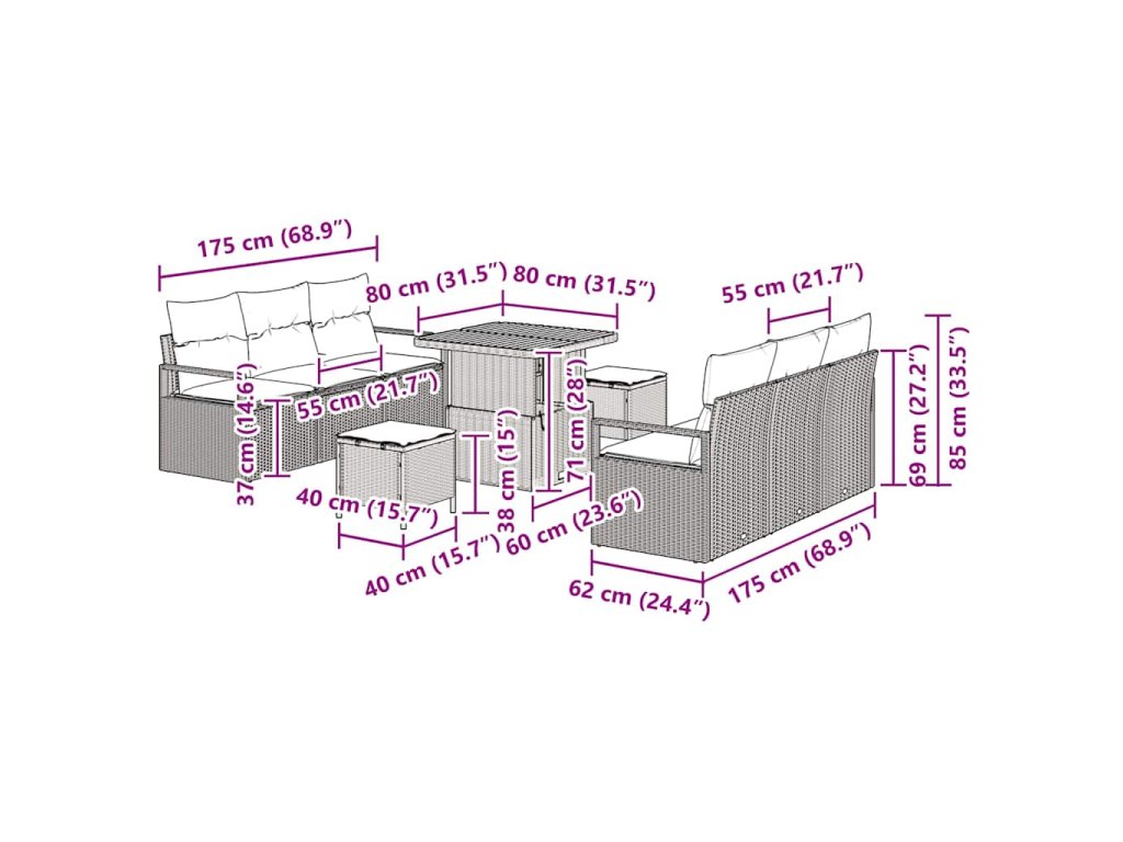 Tato zahradní sedačková souprava je pro ty, co mají rádi moderní design a funkčnost venkovního života. Její čisté linie a minimalismus z ní dělají skvělého parťáka pro zahradu nebo terasu, kde přináší klid a pohodu. Modulární design vás zve k tomu, abyste pozvali přátele a rodinu na příjemné chvíle během slunečných měsíců.