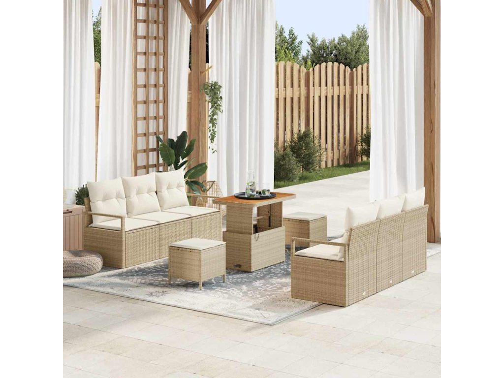 Sada zahradních pohovek s polštářem 9 pcs Béžová polyratan 3362481