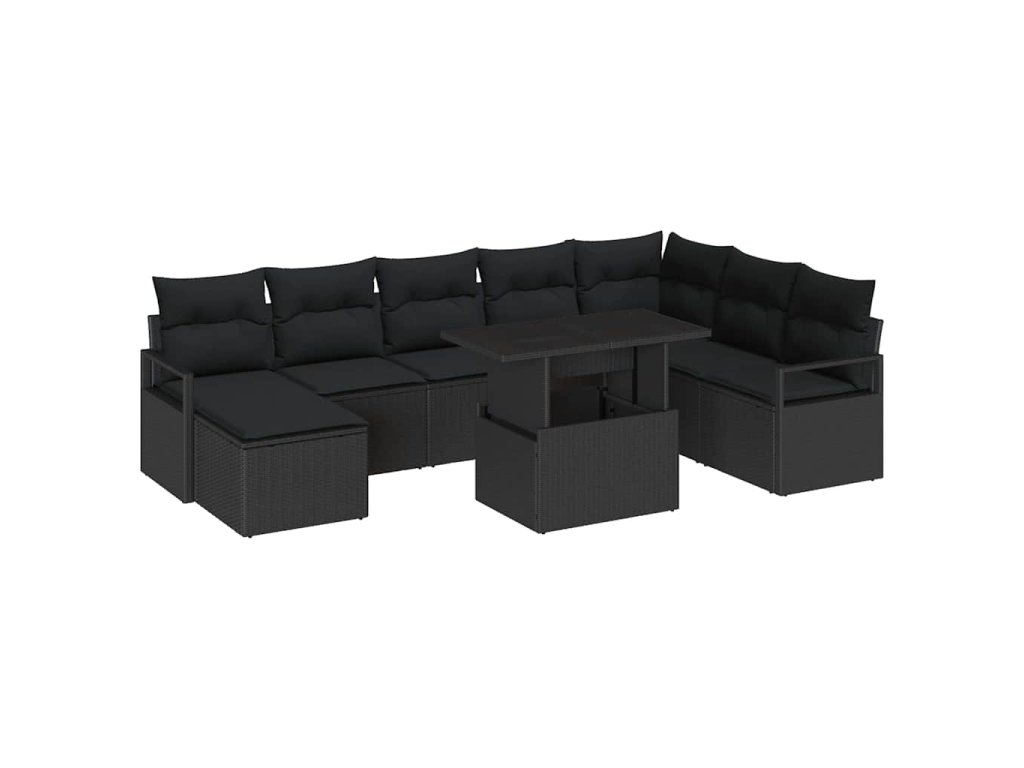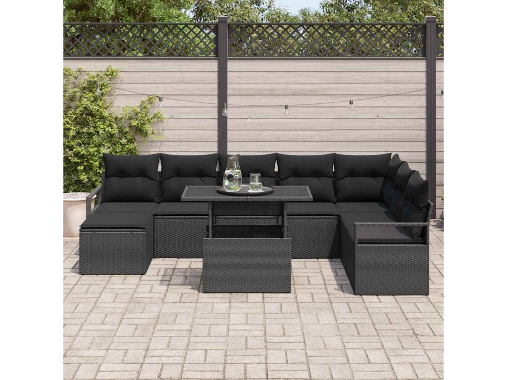 Sada zahradních pohovek s polštářem 9 pcs Černá 3348879
