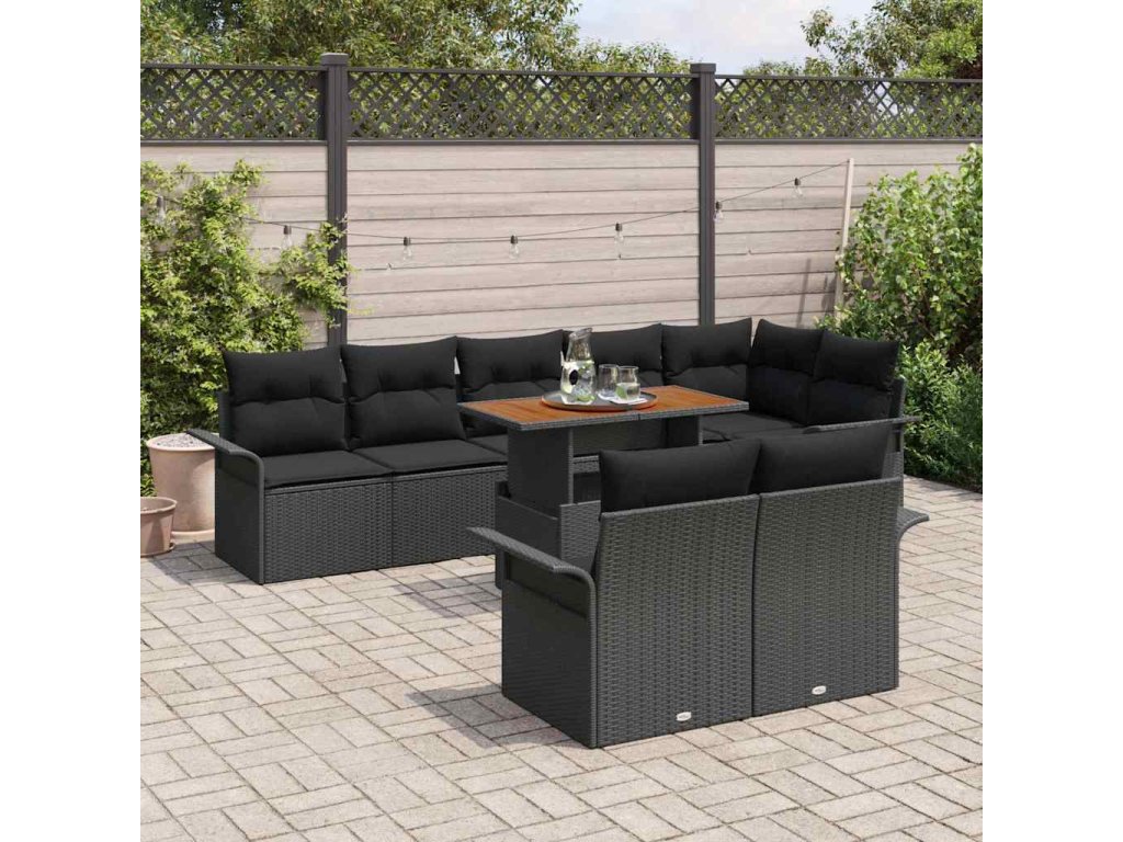 Sada zahradních pohovek s polštářem 9 pcs Černá 3349351