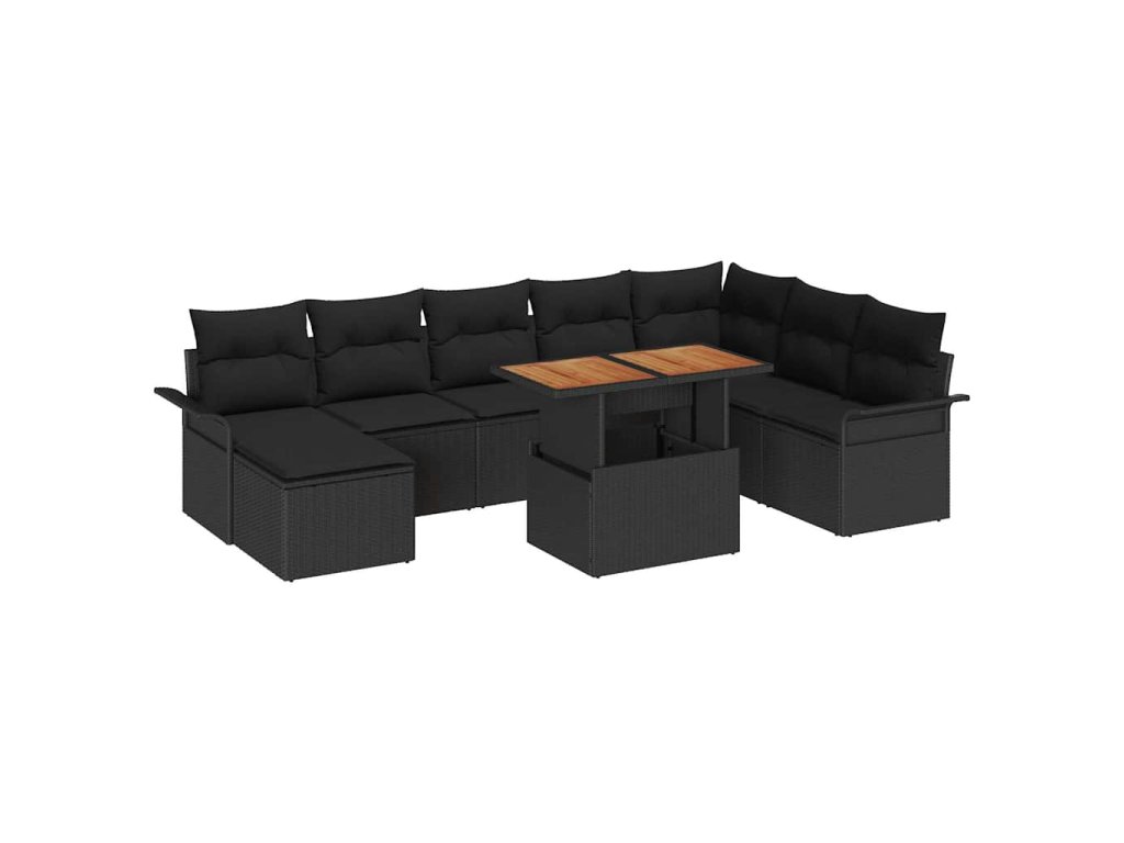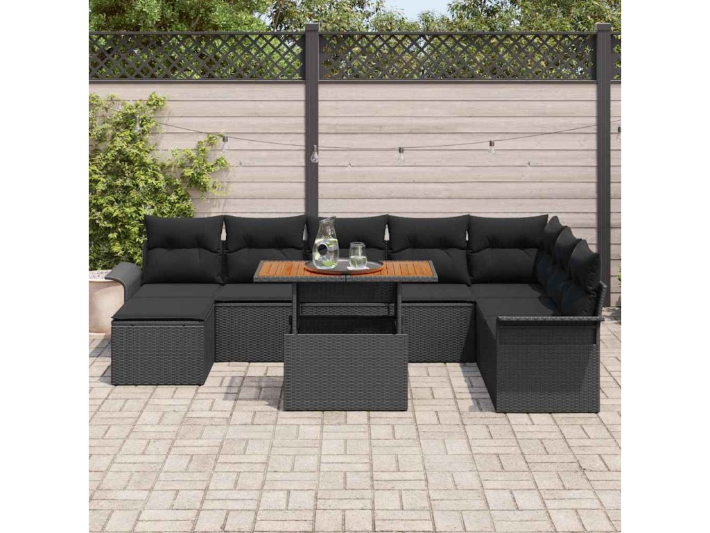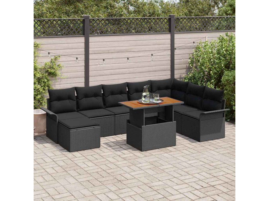 Sada zahradních pohovek s polštářem 9 pcs Černá 3349372