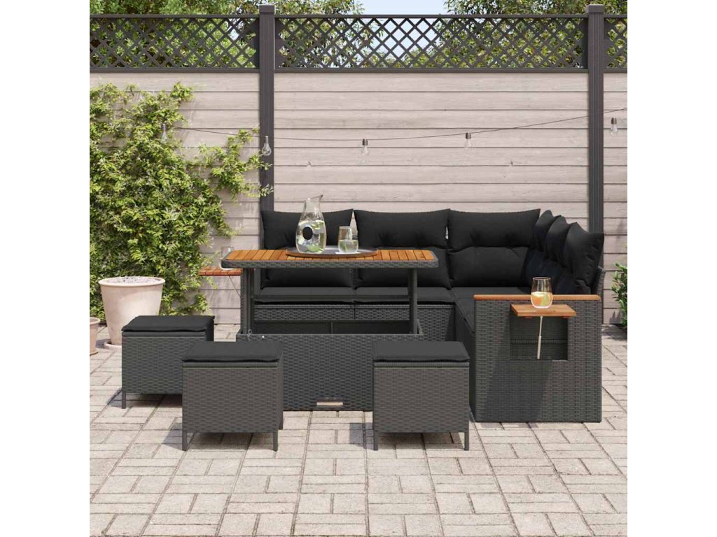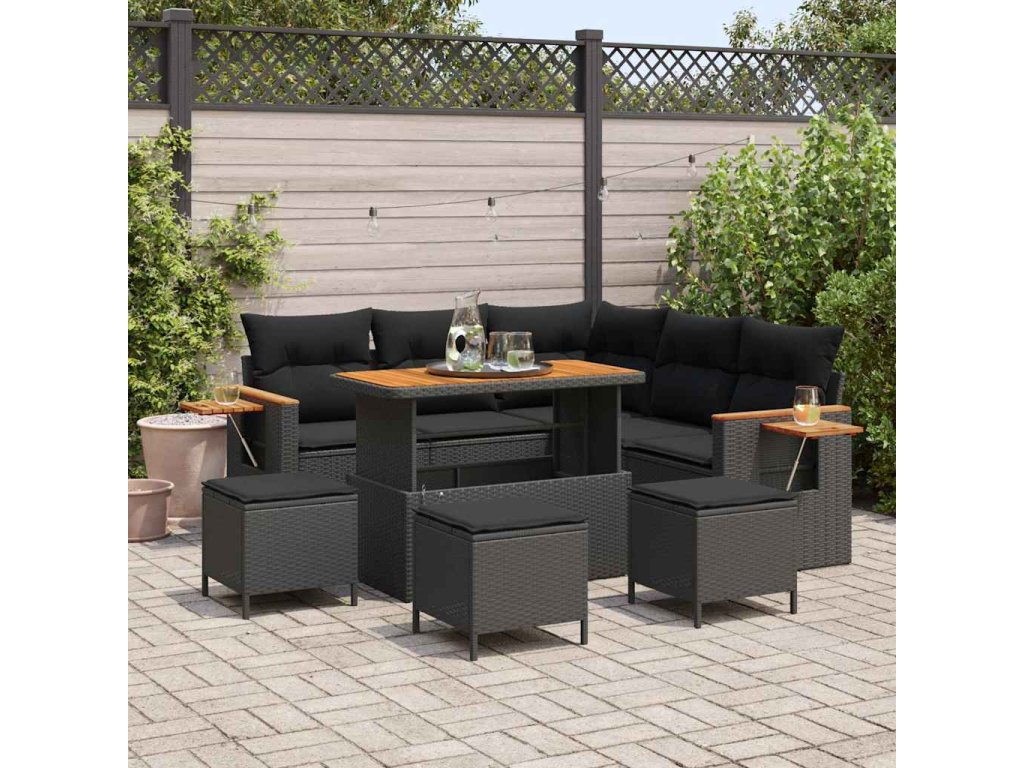 Sada zahradních pohovek s polštářem 9 pcs Černá 3363179