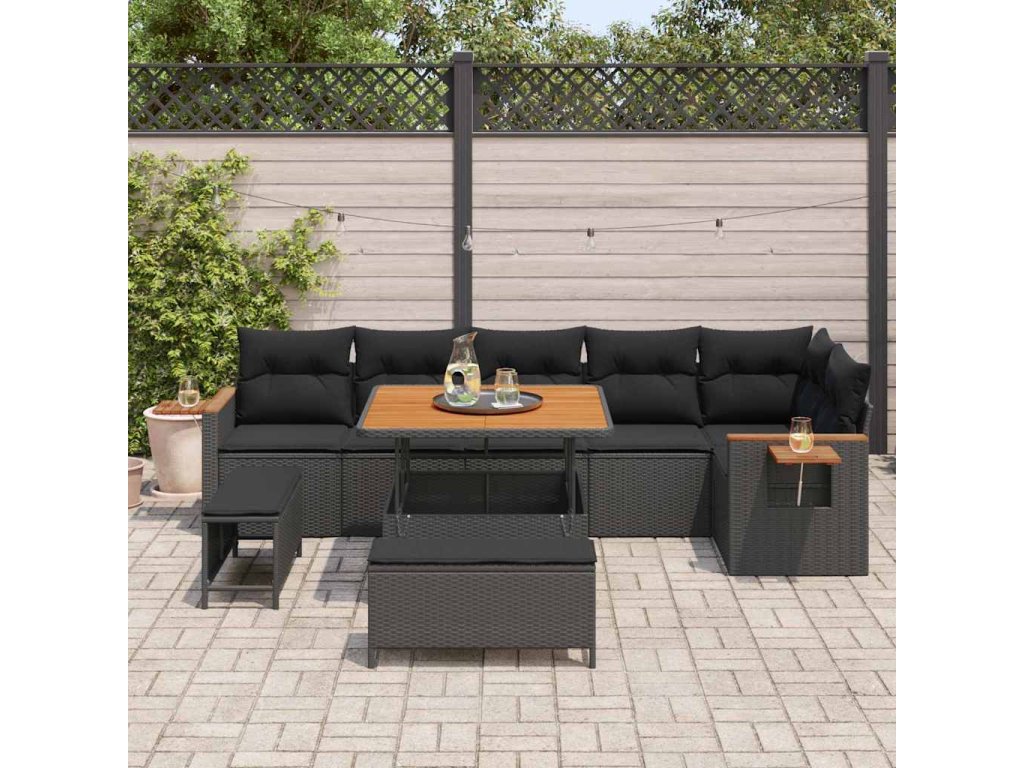 Sada zahradních pohovek s polštářem 9 pcs Černá 3363184