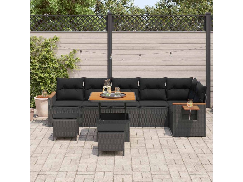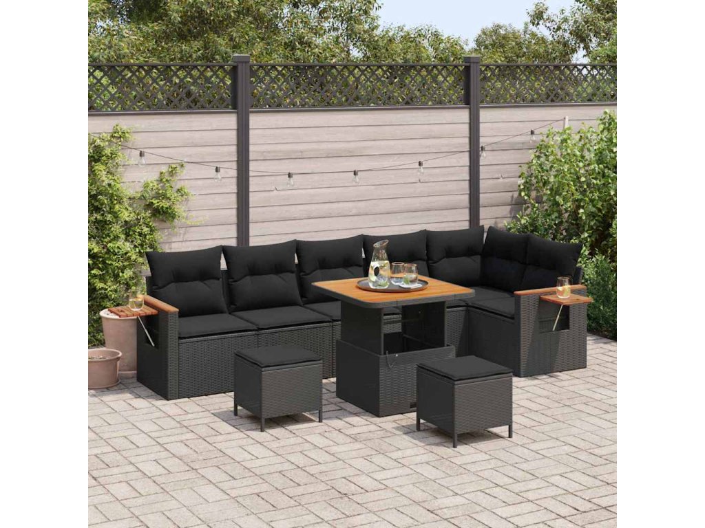 Sada zahradních pohovek s polštářem 9 pcs Černá 3363189
