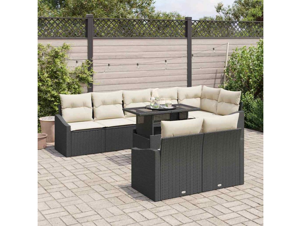 Sada zahradních pohovek s polštářem 9 pcs Černá a krémová 3349023