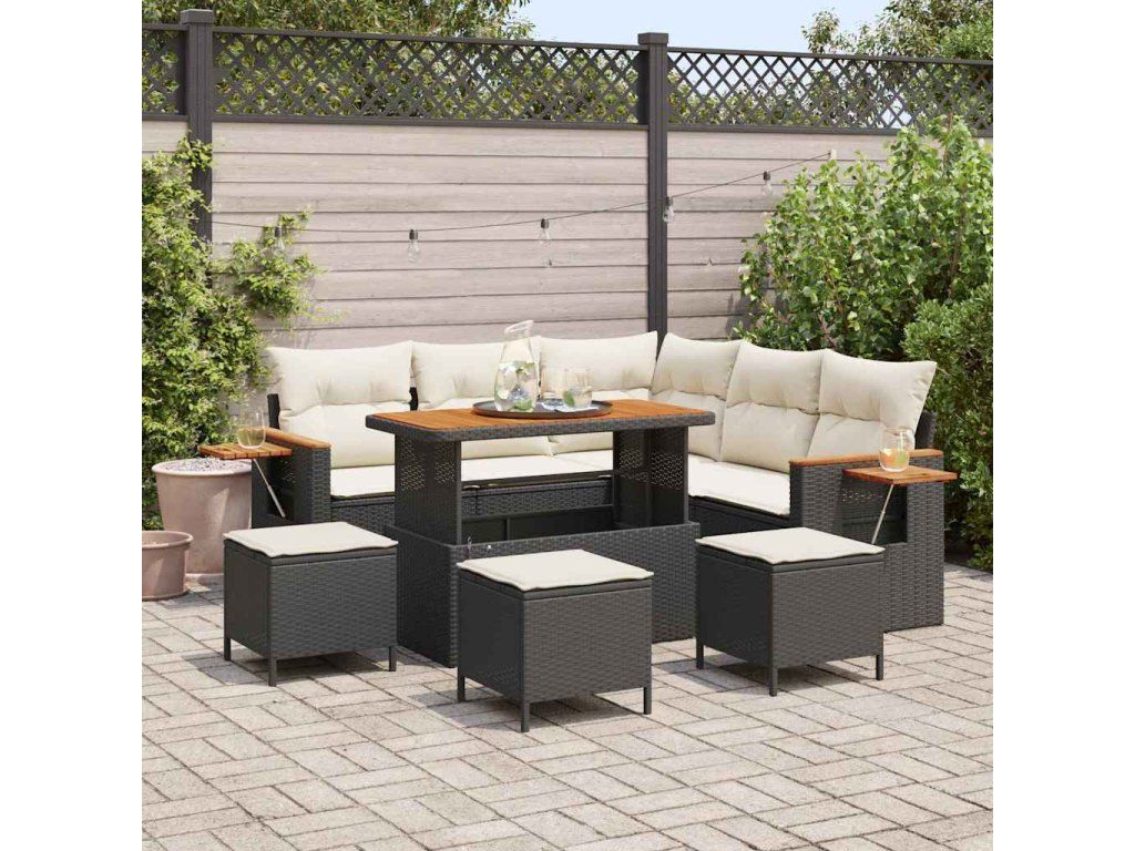 Sada zahradních pohovek s polštářem 9 pcs Černá a krémová 3363180