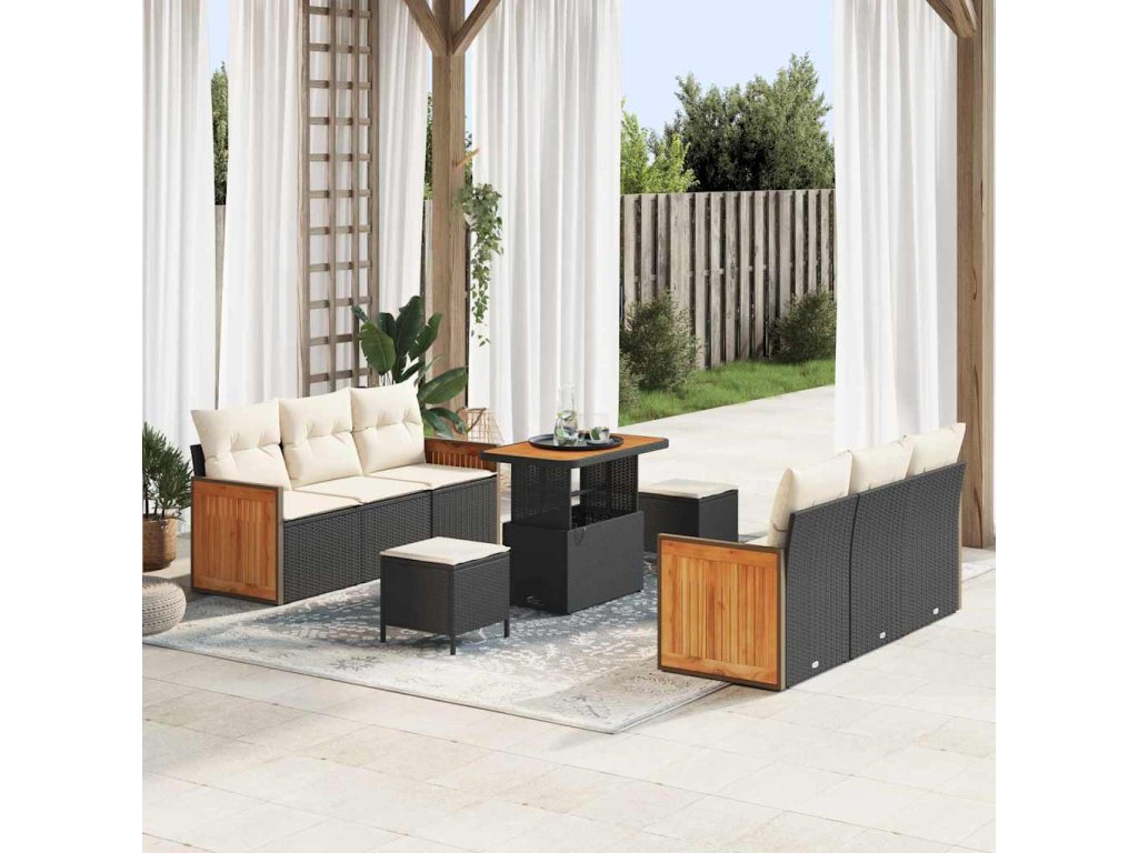 Sada zahradních pohovek s polštářem 9 pcs Černá a krémová 3363260