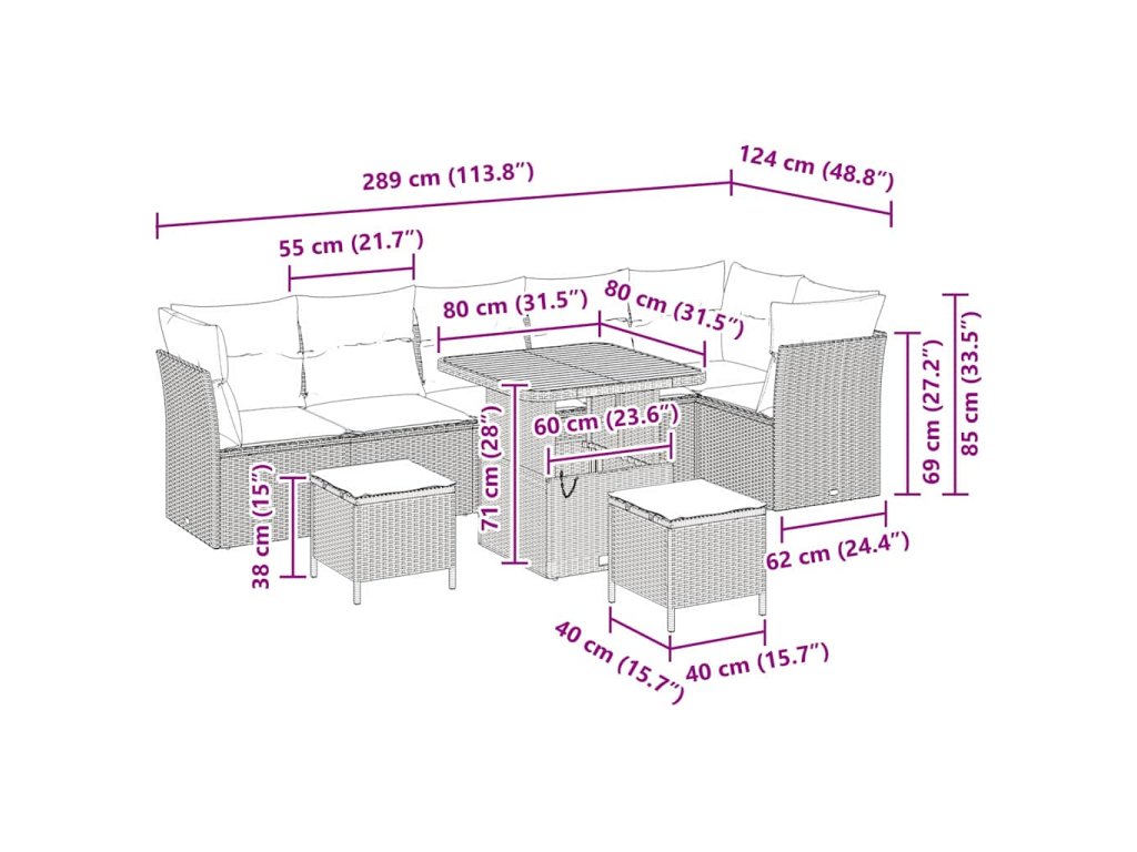 - Materiály: Tato sedací souprava je z polyratanu a práškově lakované oceli, což jí dává silný a elegantní vzhled. Díky těmto materiálům dlouho vydrží a je to skvělá volba na venkovní nábytek. Polyratan vypadá příjemně a tkaně, zatímco ocelový rám zajišťuje kvalitní oporu.