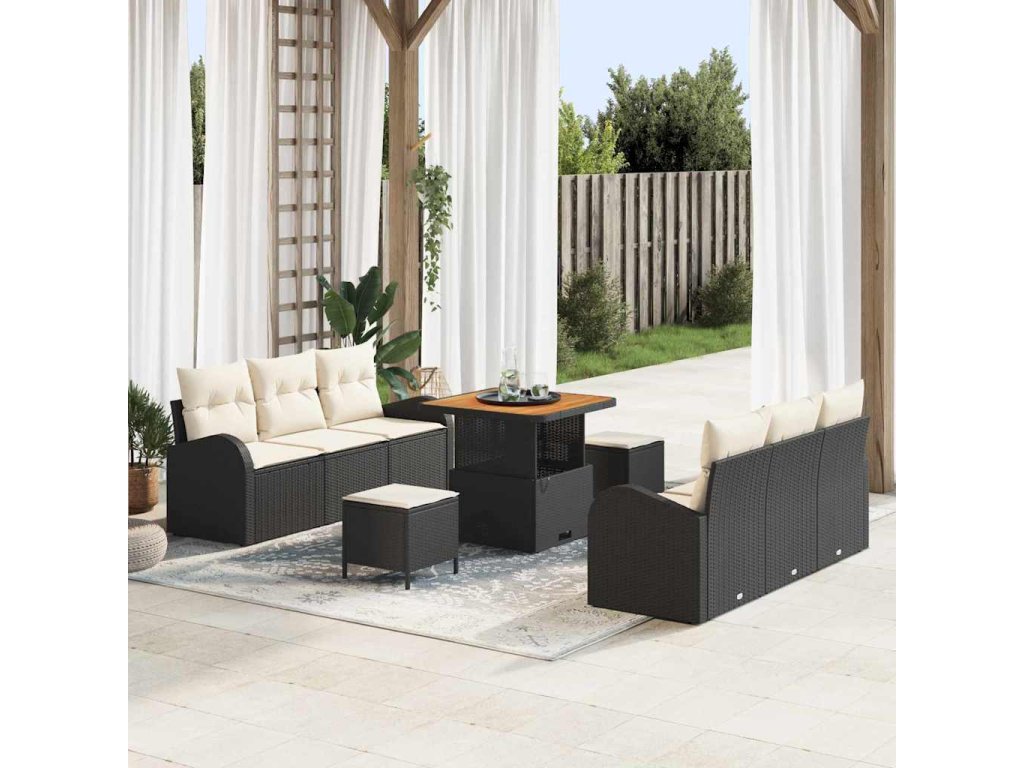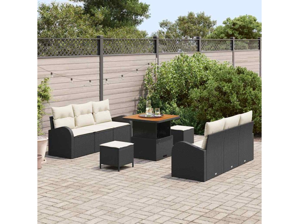 Sada zahradních pohovek s polštářem 9 pcs Černá a krémová 3364295