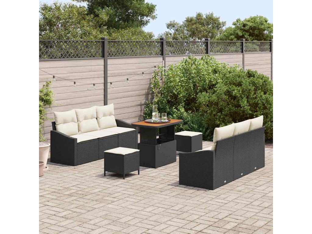 Sada zahradních pohovek s polštářem 9 pcs Černá a krémová 3364560