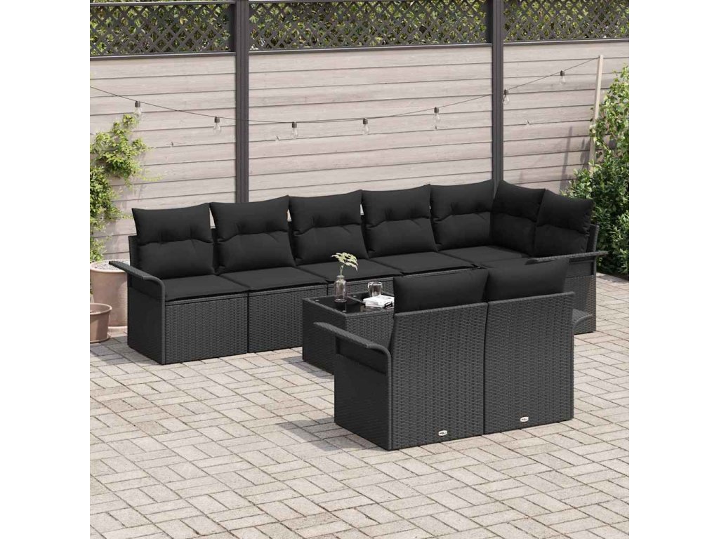 Sada zahradních pohovek s polštářem 9 pcs Černá Poly ratan 3345423