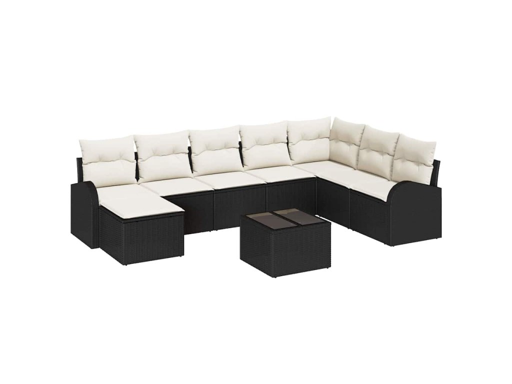 Sada zahradních pohovek s polštářem 9 pcs Černá Poly ratan 3346167