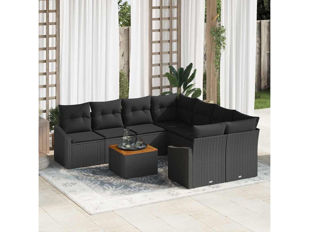 Sada zahradních pohovek s polštářem 9 pcs Černá Poly ratan 3347814