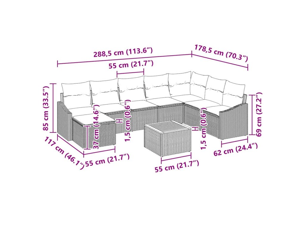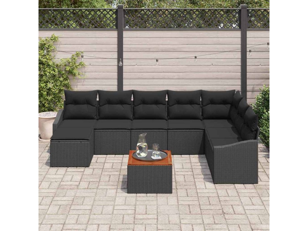 Sada zahradních pohovek s polštářem 9 pcs Černá Poly ratan 3347870