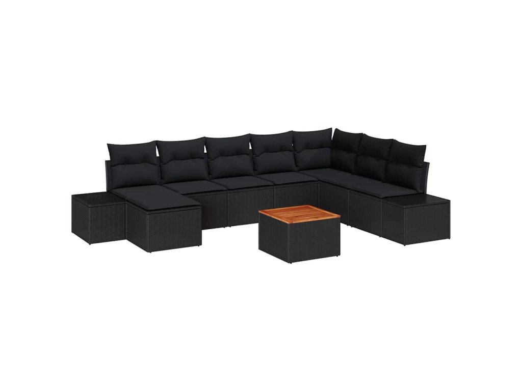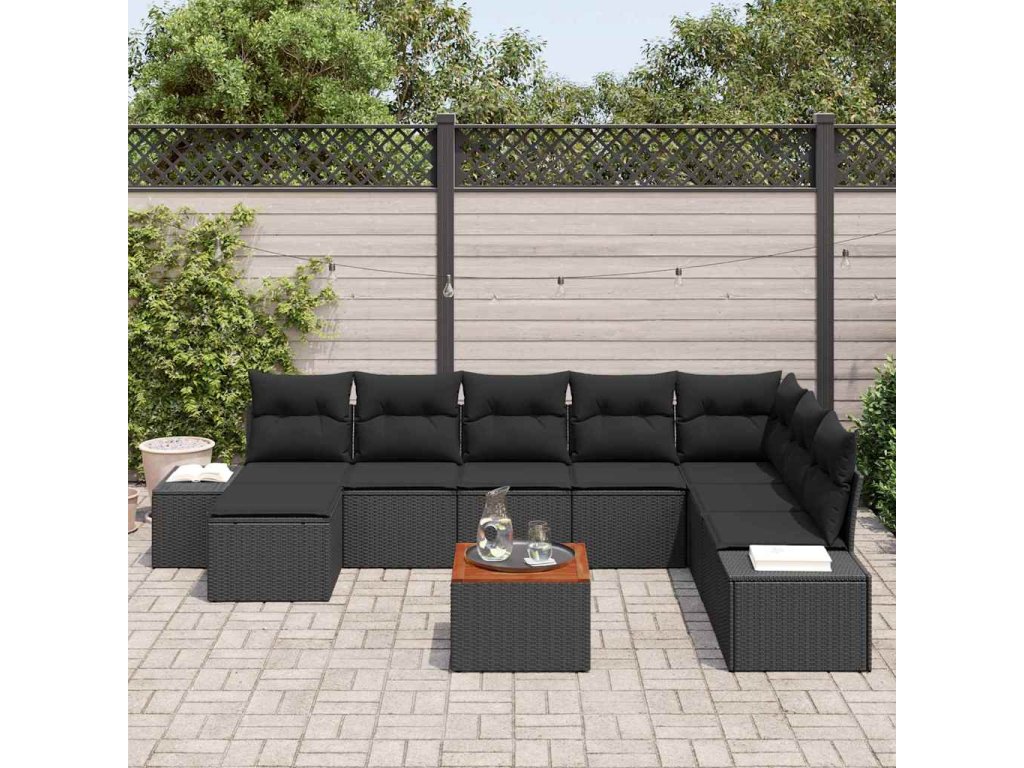 Sada zahradních pohovek s polštářem 9 pcs Černá Poly ratan 3347996