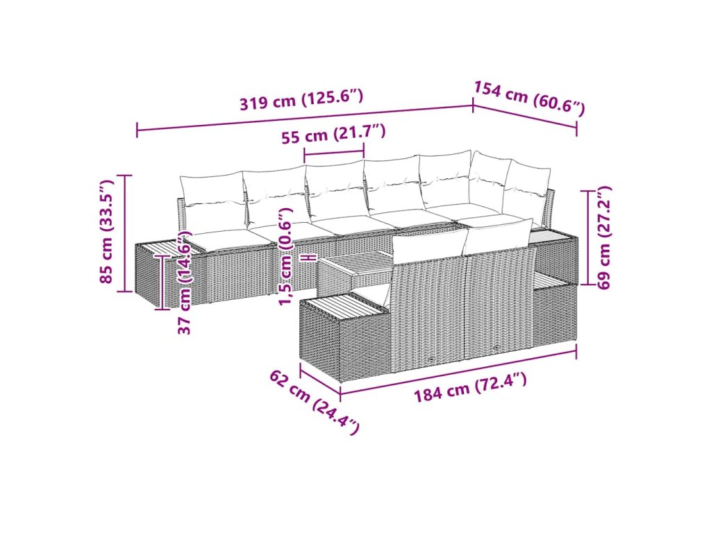 - 4 x boční sofa: 55 x 55 x 37 cm (D x Š x V)