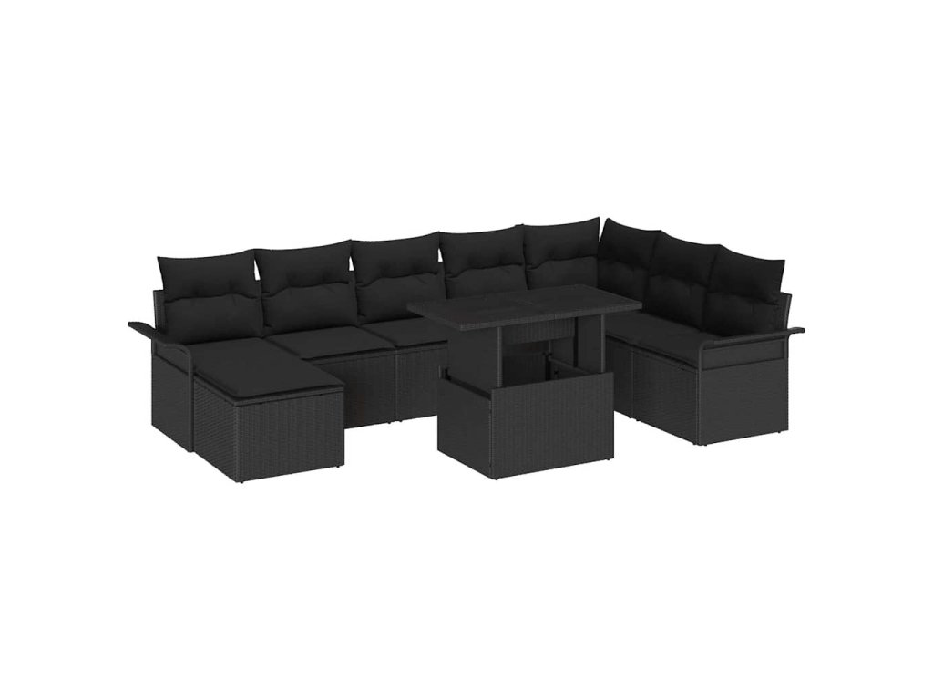 Sada zahradních pohovek s polštářem 9 pcs Černá Poly ratan 3348339
