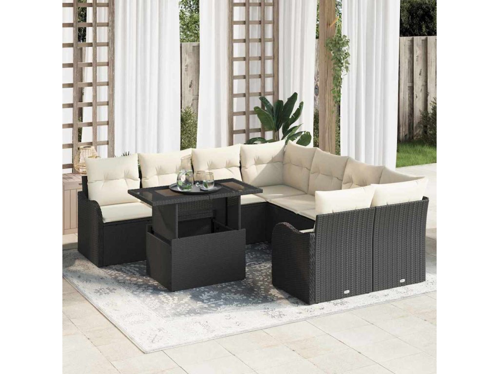 Sada zahradních pohovek s polštářem 9 pcs Černá Poly ratan 3348433