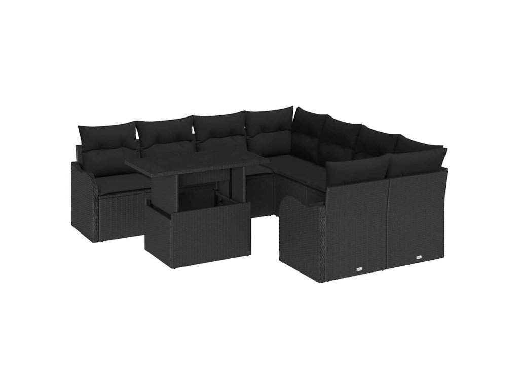 Sada zahradních pohovek s polštářem 9 pcs Černá Poly ratan 3348439