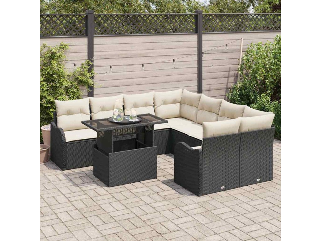 Sada zahradních pohovek s polštářem 9 pcs Černá Poly Ratan 3357170