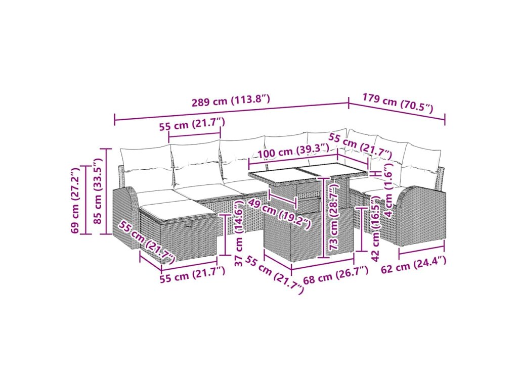 Sada zahradních pohovek s polštářem 9 pcs Černá Poly ratan 3359774