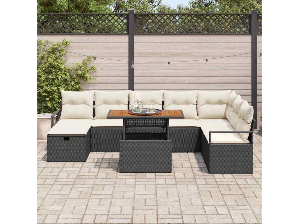 Sada zahradních pohovek s polštářem 9 pcs Černá Poly ratan 3360009