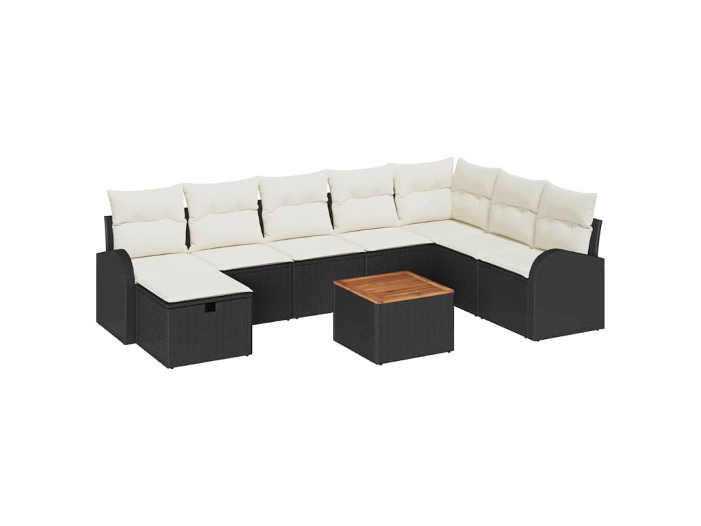 Sada zahradních pohovek s polštářem 9 pcs Černá Poly ratan 3360855