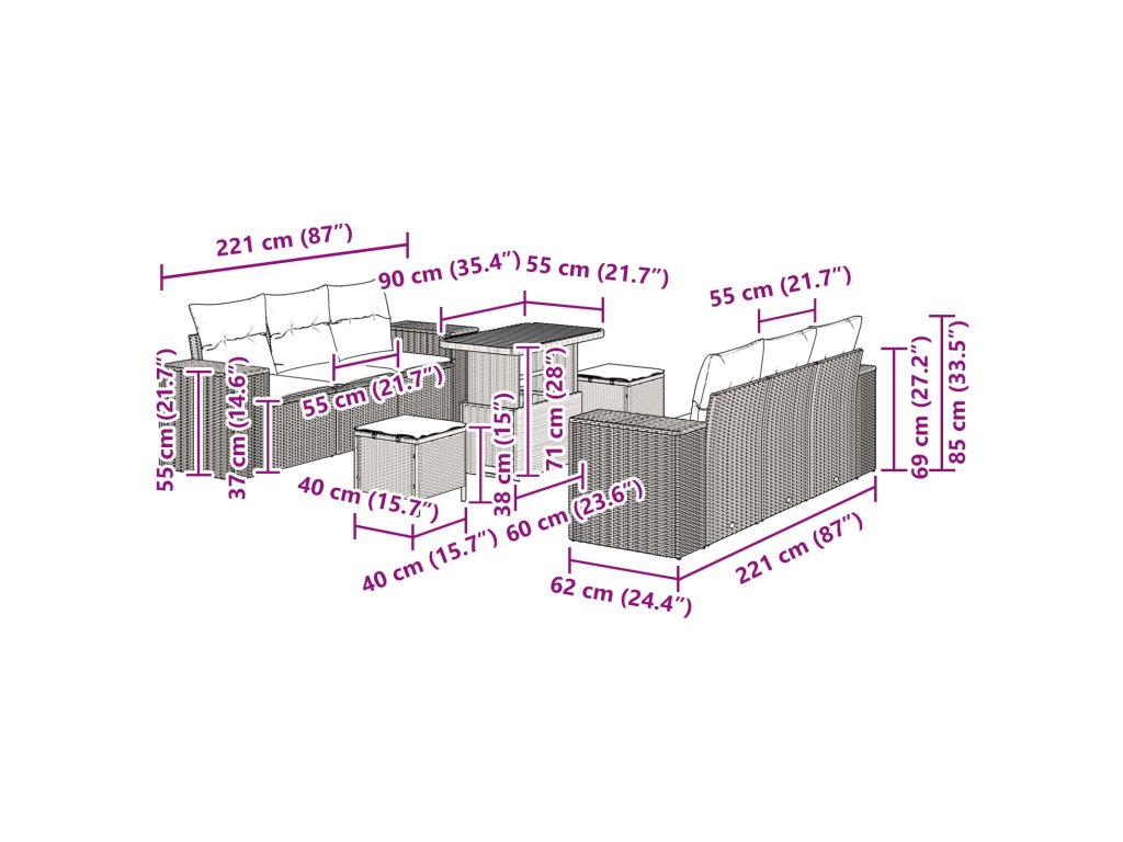 Tahle modulární zahradní sedací souprava je skvělý kus nábytku pro venkovní zahrady a terasy. Má moderní vzhled s čistými liniemi a málo ozdob, což dodává eleganci a zároveň to zaručuje praktičnost a pohodlí. Je to ideální kousek na zahradní párty nebo na lenošení venku. Můžete ji různě uspořádat podle toho, jak potřebujete, což znamená nekonečné možnosti přizpůsobení. Ať už se sluníte na jaře, nebo pořádáte letní brunch, tahle souprava se snadno přizpůsobí vašemu stylu života.